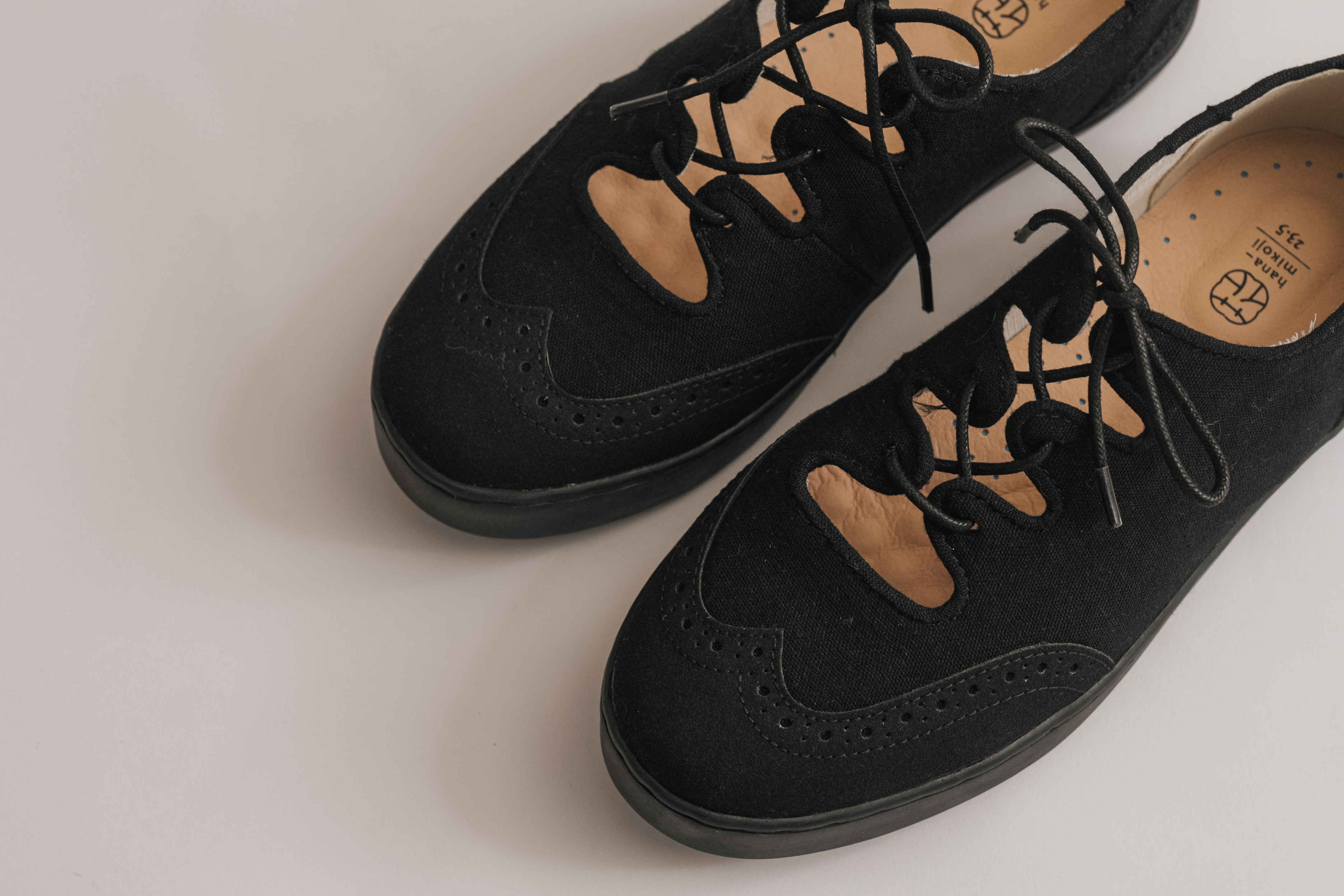 レースアップシューズは気軽にはけて、ちゃんと歩けるシューズ。