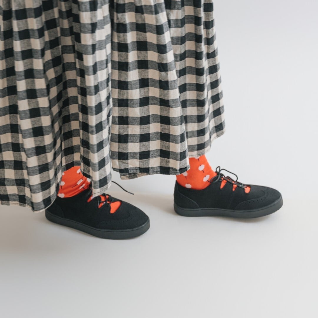 ・ベロがなくて編み上げになっているので靴下の柄もちらりのユニークシューズ