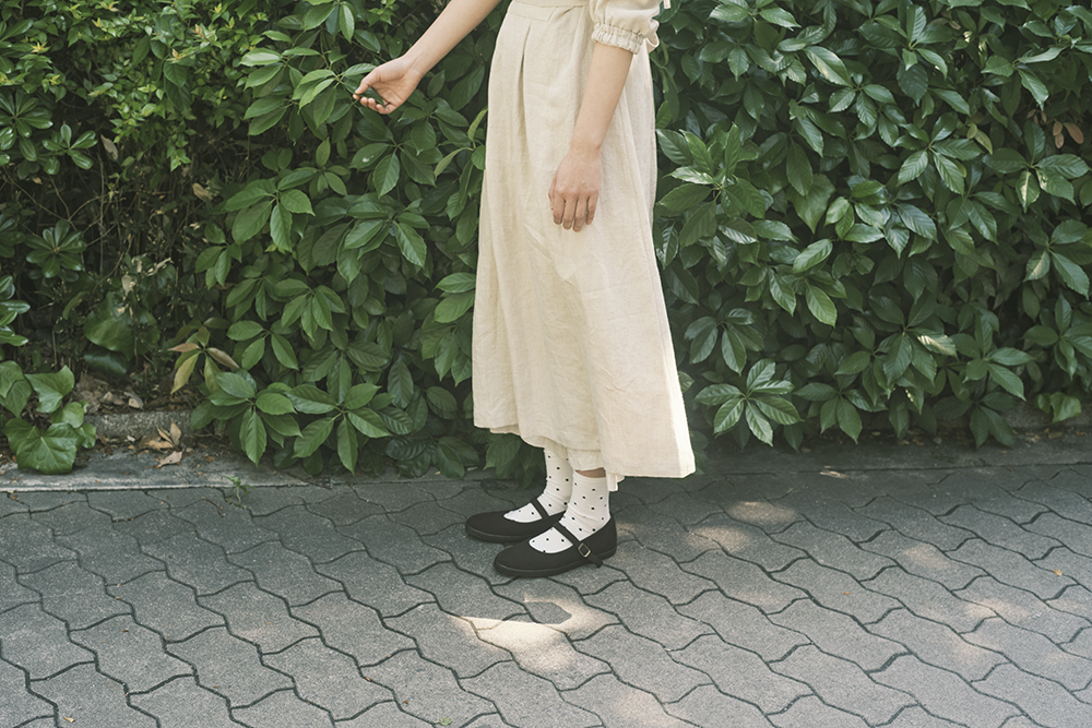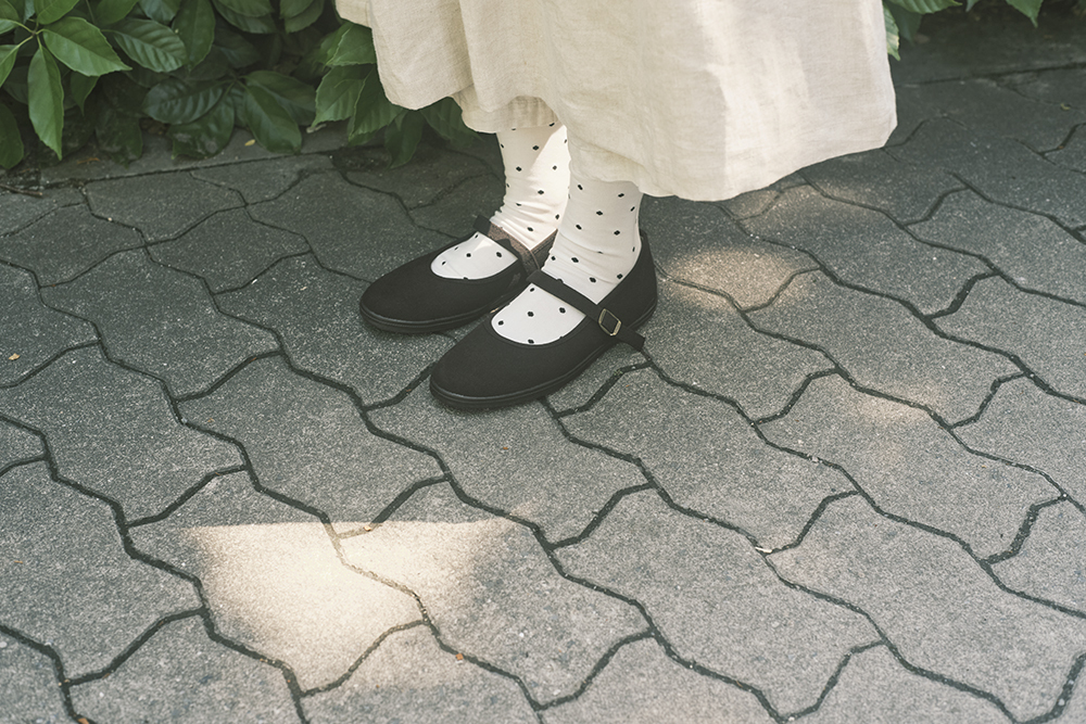 甲の部分が見えるので柄物ソックス、カラータイツなどと合わせても◎