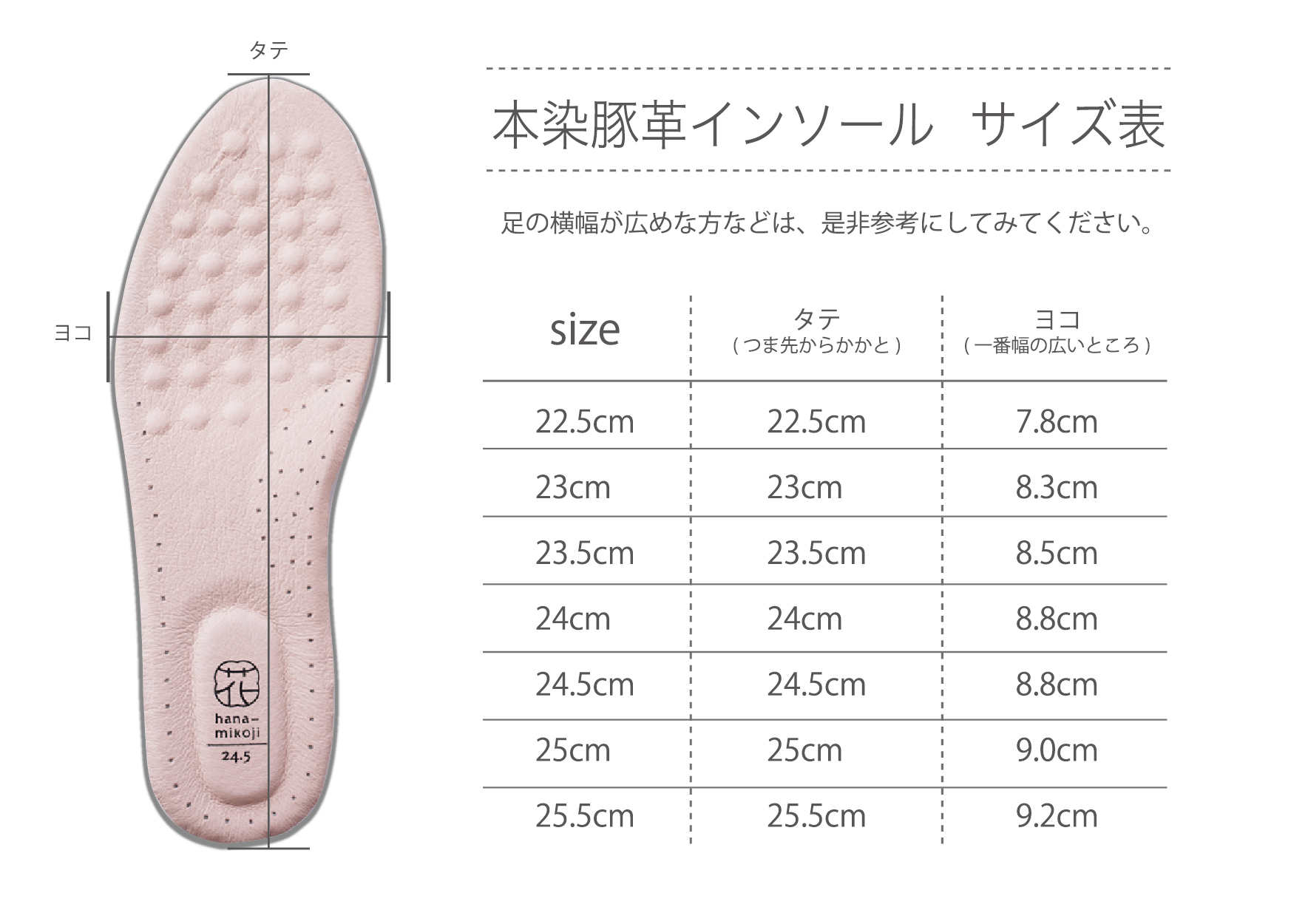 インソールの足幅については上記ご参照ください。