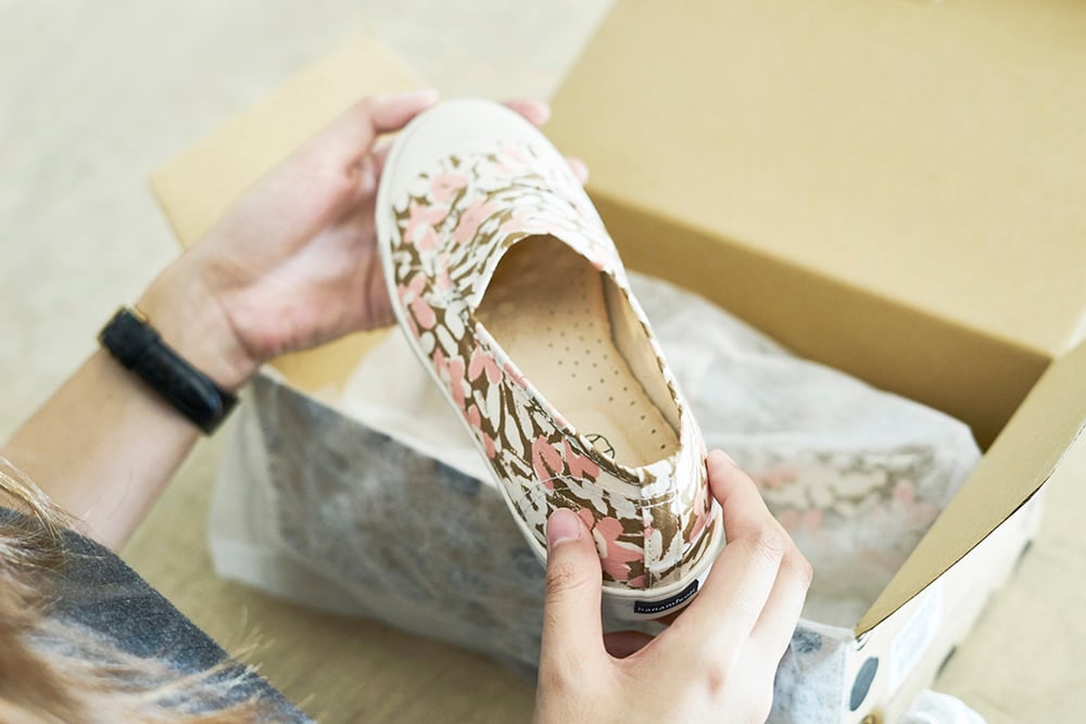 ※シューズによってはプリント生地を使用していますのでシューズの種類によっては、裁断箇所によって模様の見えかたが異なります。